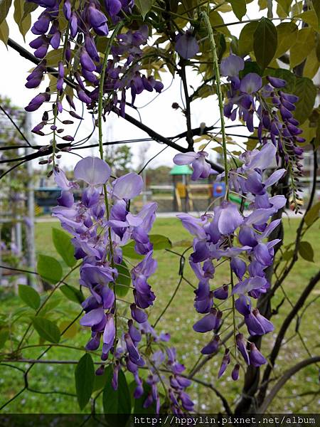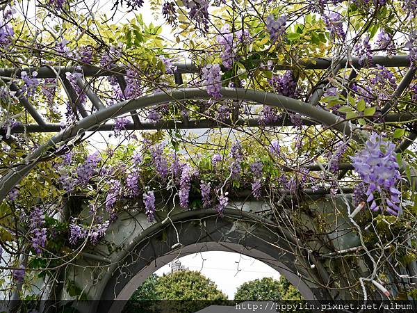 遠看像葡萄~紫藤花有一股清香的花香喔~在拱門下就可聞到!