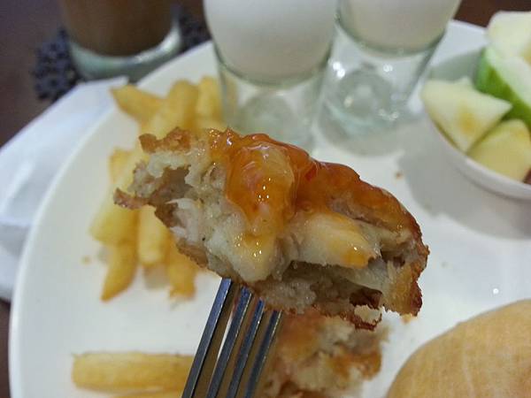 這次在團購網買的是199元【日安36。素人廚房】精選Brunch綜合海鮮(多利魚+手工鮮蝦餅+洋蔥鮪魚起司貝果+水煮蛋+酥炸薯條) + 港式絲襪奶茶