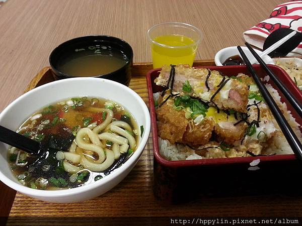 有麵又有飯,份量十足丫~最後還是打包當晚餐了豬排肉真的好嫩,當晚餐微波過還是一樣軟嫩!