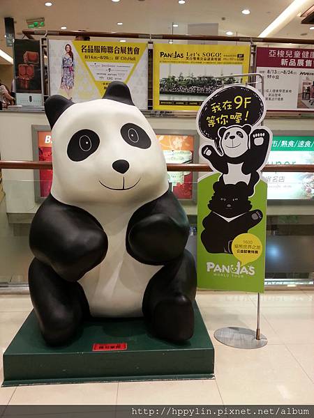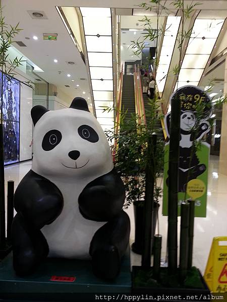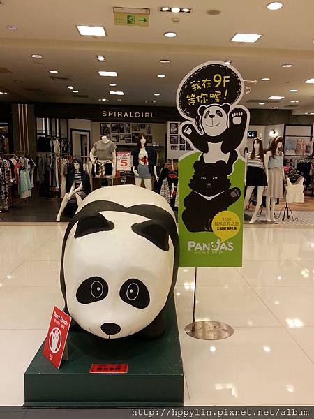 進入復興館,就看到一隻正歪著頭的貓熊說:我在9F等你喔!