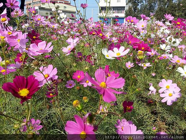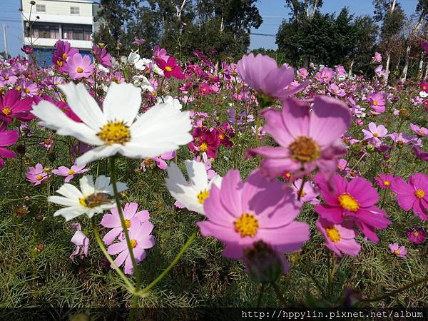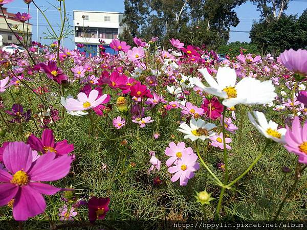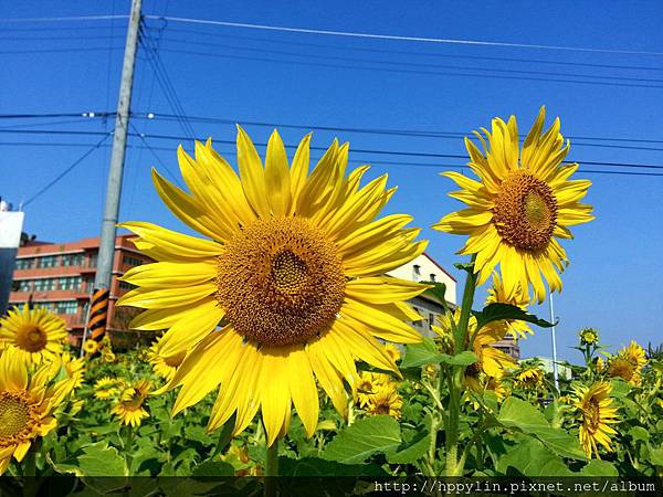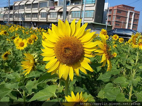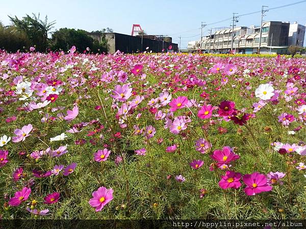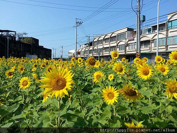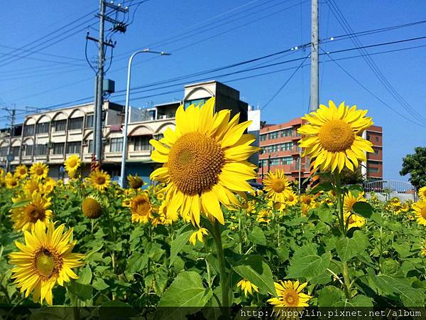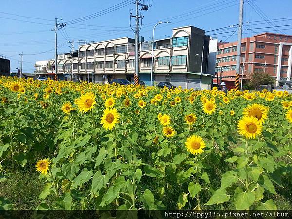 某個星期日的中午與友人欲至南竂漁港吃午餐,在經過「舊港大橋」前,發現一大片的向日葵(亦稱太陽花)與波斯菊,立馬停在路邊,下去拍照~~真是美!
