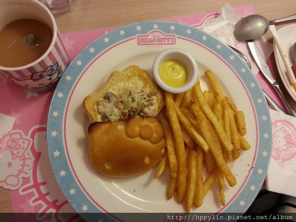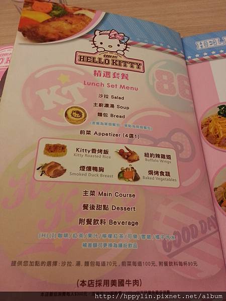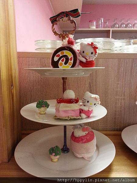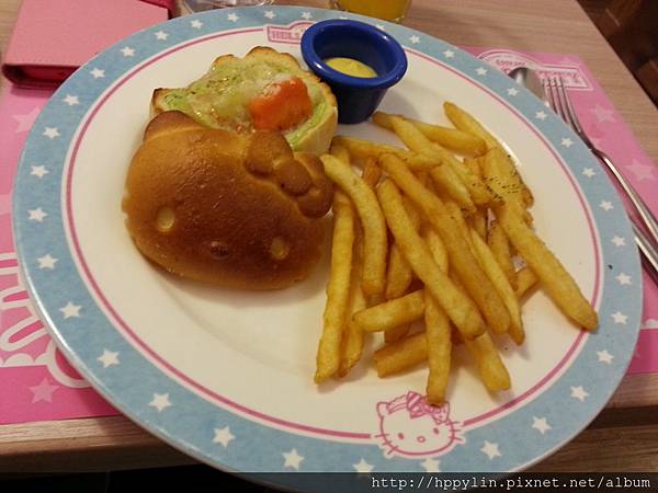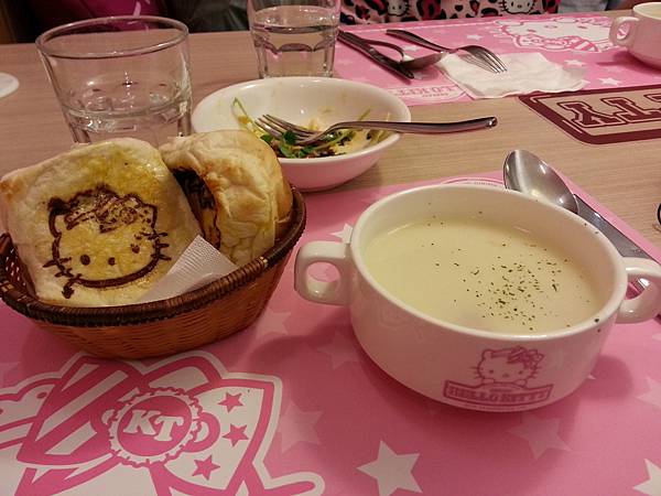 大年初二與友人來這家hello kitty餐廰吃飯,店家前幾天都休年假,沒法電話預約,只好在開店時11:30來卡位了,還好人不多~