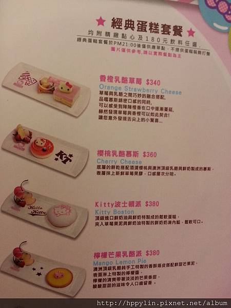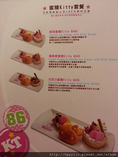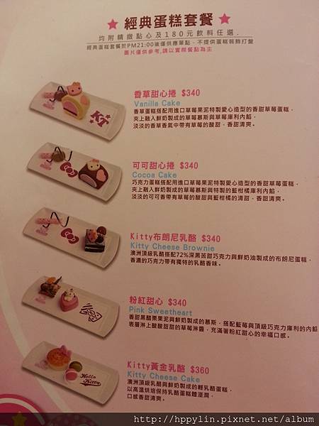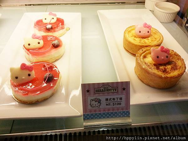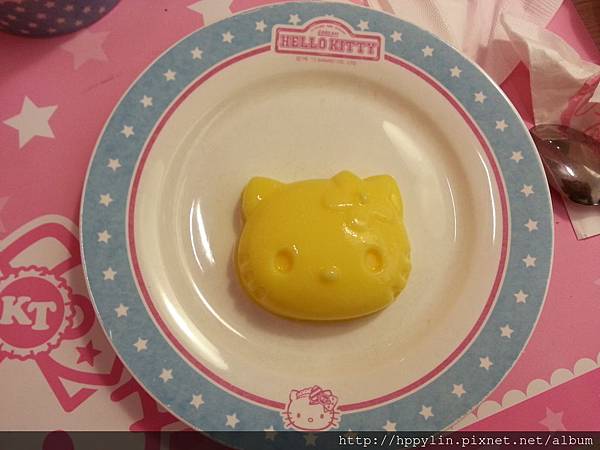 布丁kitty!!(音高八度~),這道送上來時,大家又拿起手機拼命的拍照,有的人的布丁kitty臉裂開了,因為服務人員在放桌上時晃動太大,所以大家要挑選一個完整的kitty臉來拍!![]()