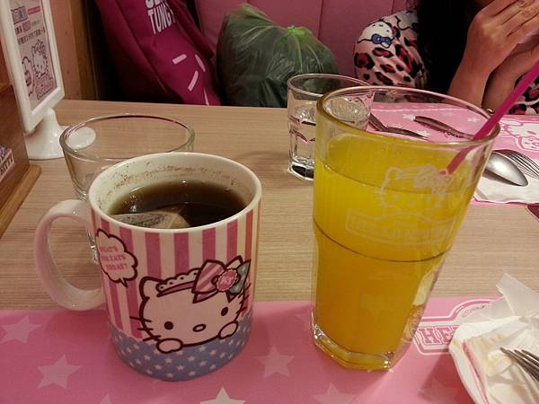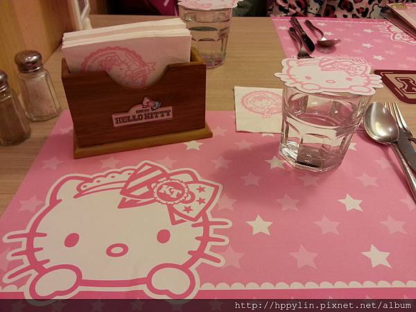 kitty餐桌墊、kitty杯墊,kitty餐巾紙,友人最後離開時還和服務人員要了好幾套帶回家收藏!~