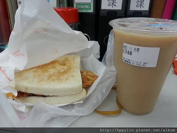 點了「日式味噌豬排吐司」$55及紅茶拿鐵$45,剛好$100,不用再另付現金~