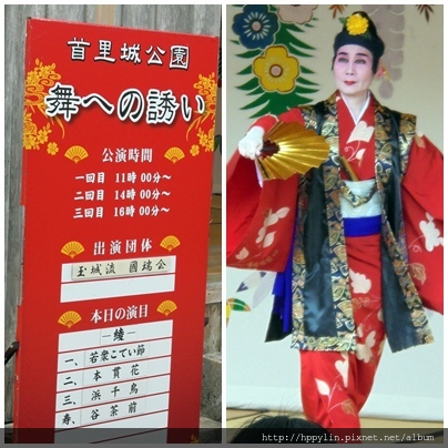 門票820日圓,8:30~19:00,舞蹈表演每週三五六日,三場11:00、14:00、16:00在首里城公園表演