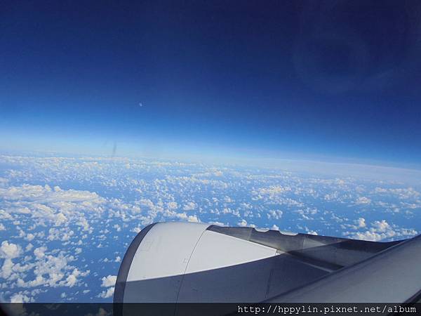 抵達日本時已是19:10(日本當地時間),所以在飛機上可以拍到藍天和夜晚的月亮~