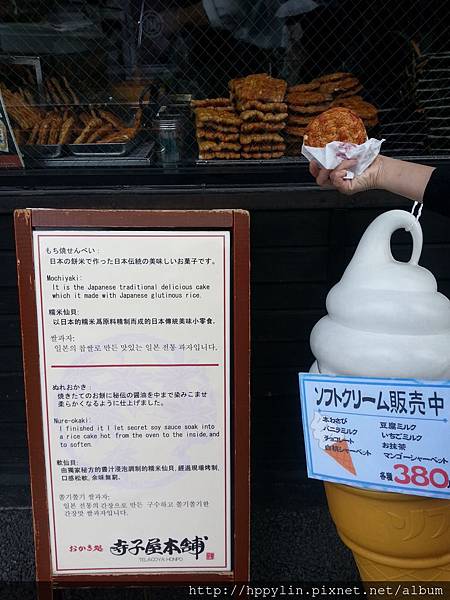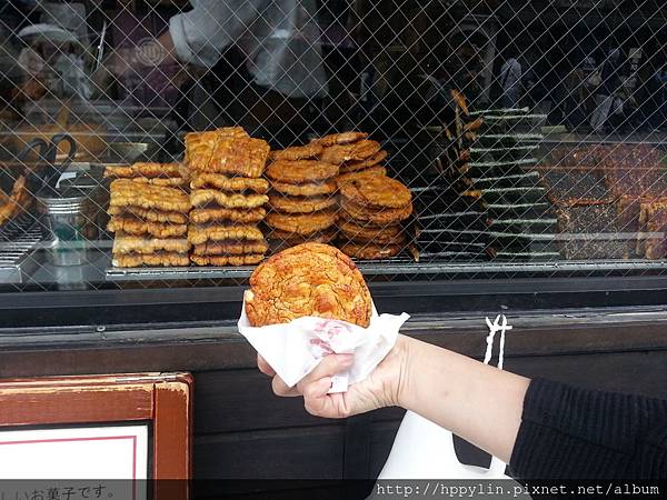 在當地老街買的現作仙貝,還是熱的,又脆又好吃~