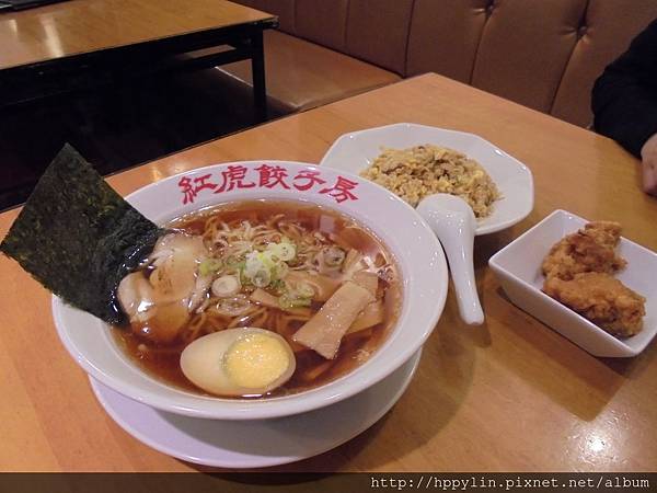 點了「拉麵套餐」-有醬油拉麵、炒飯、炸雞塊,2人合吃