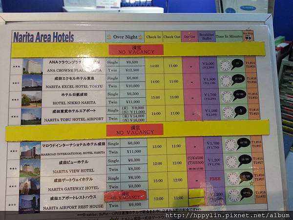 在成田機場航站有個預約訂房服務,人員會先打電話給飯店代訂,至飯店再付款即可。因為語言不通,幸好同班機的台灣人幫忙代訂一間2人房~(出外真的是靠朋友)