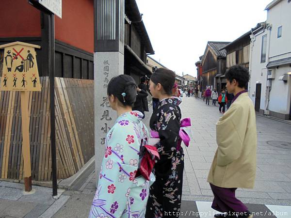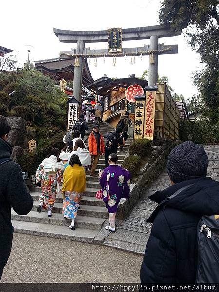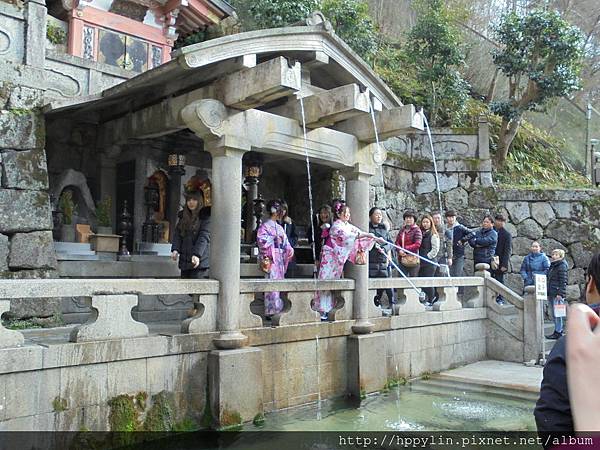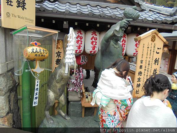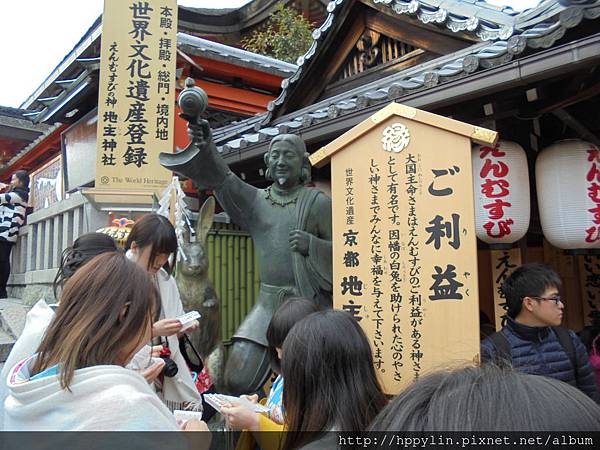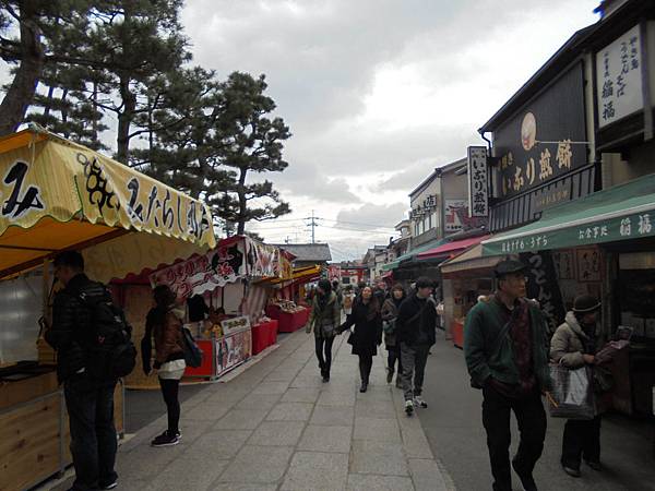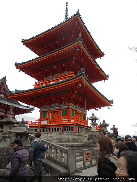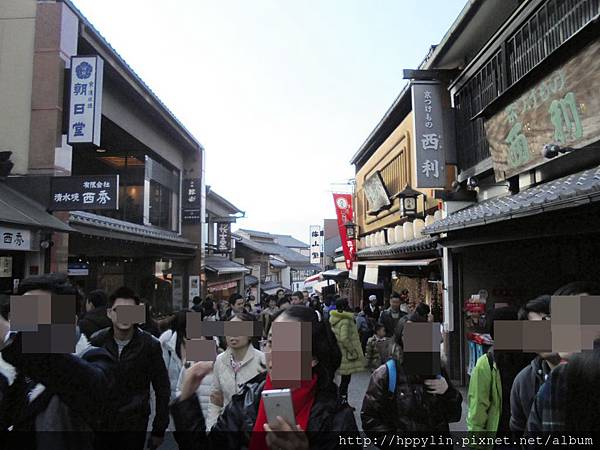 我們在五條坂下車(因車上的語音導覽說在此下車可到清水寺),跟著路標走,被指到另一條「茶碗坂」上去,我走的好喘,因一路上坡天氣又冷,京都比大阪冷多了~後來回來看地圖發現,從清下道下車,走清水坂較近![]()