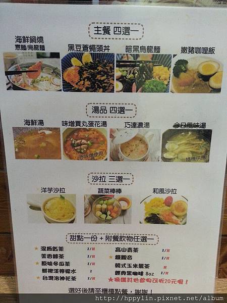 在團購網買的~只要148元,即可享有【飲物堂】手作日式料理單人獨享〈含黑豆蒼蠅頭丼/嫩豬咖哩飯/暗黑烏龍麵/海鮮鍋燒(意麵/烏龍麵) 四選一 + 海鮮湯/味噌貢丸蛋花湯/巧達濃湯/今日風味湯 四選一 + 蔬菜棒棒/洋芋沙拉/和風沙拉 三選一 + 甜點一份 + 附餐飲物任選一〉