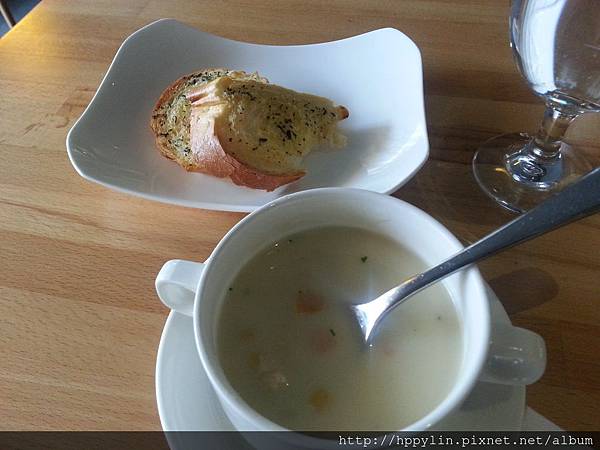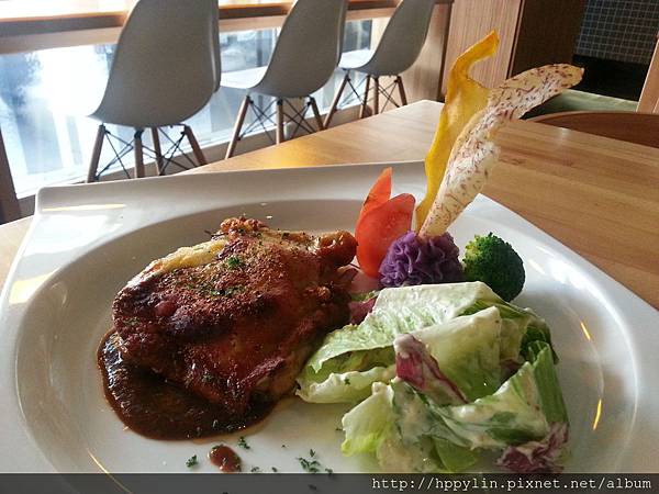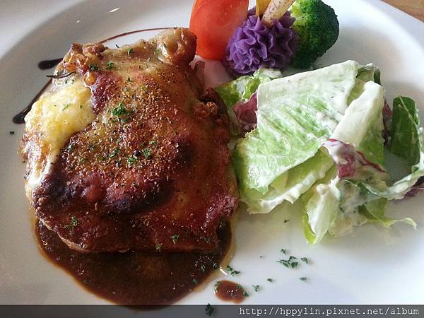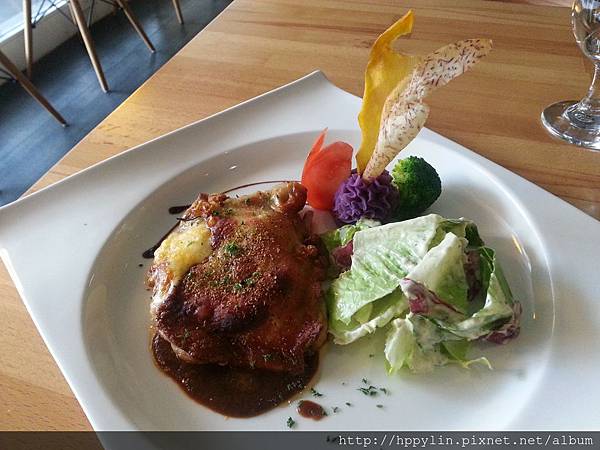 點了「諾曼地蘋果嫩雞」,記得中間有夾起司,吃起來不錯~