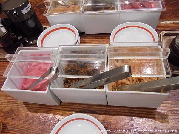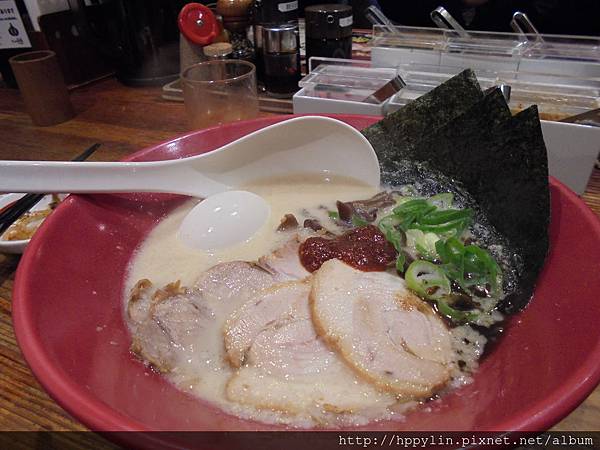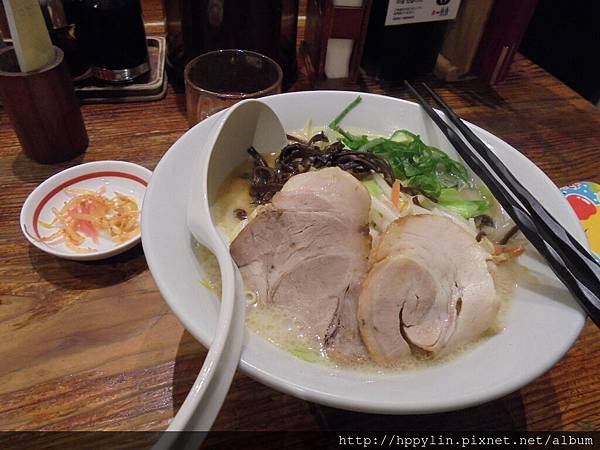 後來我們同桌的對面來了日本人,很驚奇的看見一種新吃法就是把拉麵吃完後點一碗白飯,倒進剩下的湯頭變稀飯吃~這人也太會吃了![]()