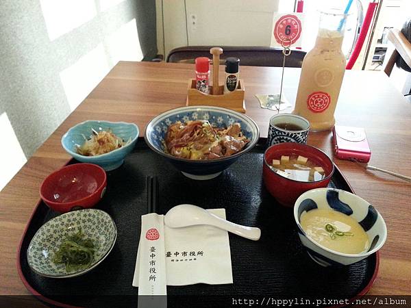 我點了「京都醬燒嫩雞親子 丼 」260元及「市役所紅茶拿鐵」65元,飲料好喝~![]()