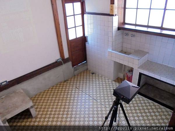 廚房,放有一台投影機播放改建歷史
