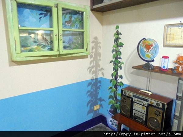 還有一間3D彩繪的客廳~日曆、鐘、樹、地球儀都是彩繪