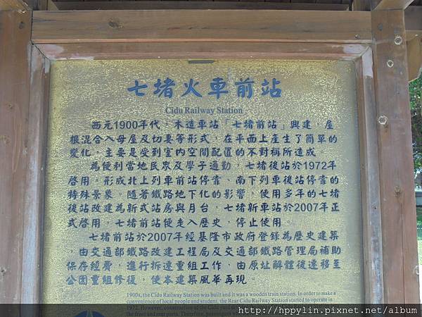 七堵舊驛為臺鐵古老火車站,屬日本時代的遺產,在全台鐵道驛站中自始未經拆建,為促進土地利用與地方發展,昔日七堵前站(舊站)於民國96年1月21日配合本局路線切換裁撤後,木造舊站房無償點交基隆市政府文化局接管,經過文化局聘請專業設計公司,依照原始樣貌加以整修,在昔日站房原址新建鐵道文物紀念公園一座。(資料來源:台灣鐵路管理局http://www.railway.gov.tw/Cidu/CP.aspx?sn=13669)