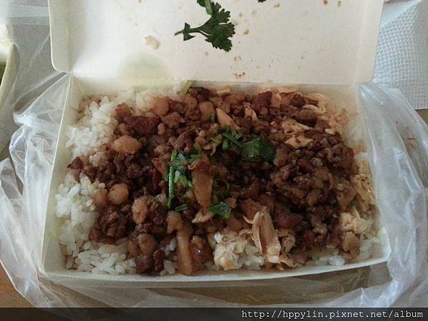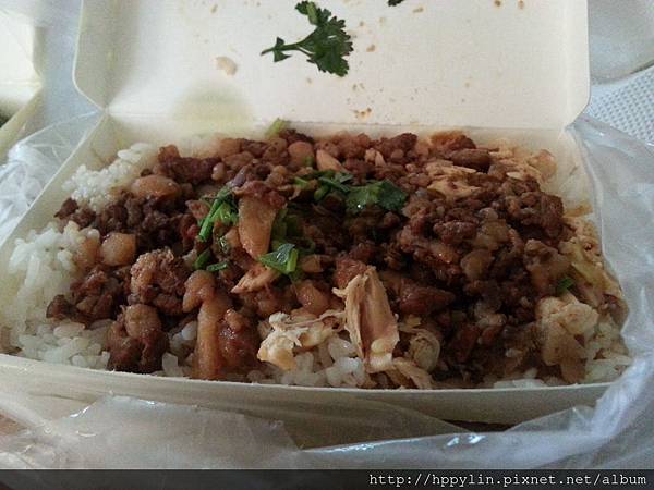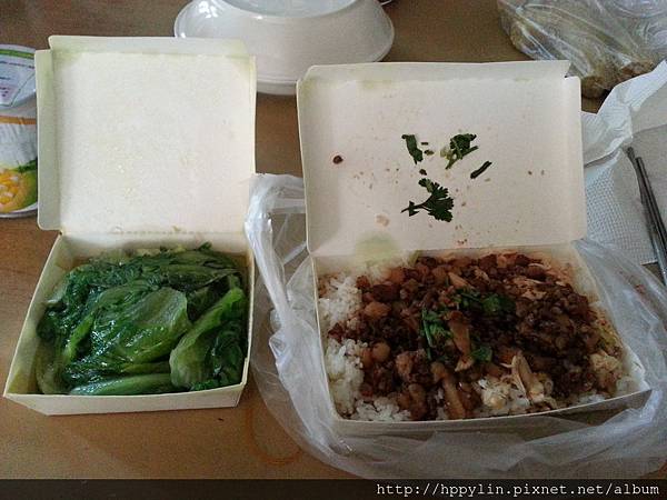 假日人潮多,外帶了雞滷飯65元及燙青菜35元