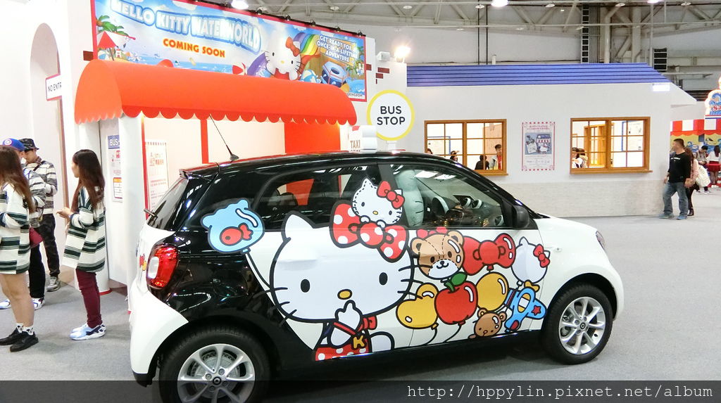 公車站:外型貼滿了KITTY,車子內也有KITTY,好想把車開回家喔~