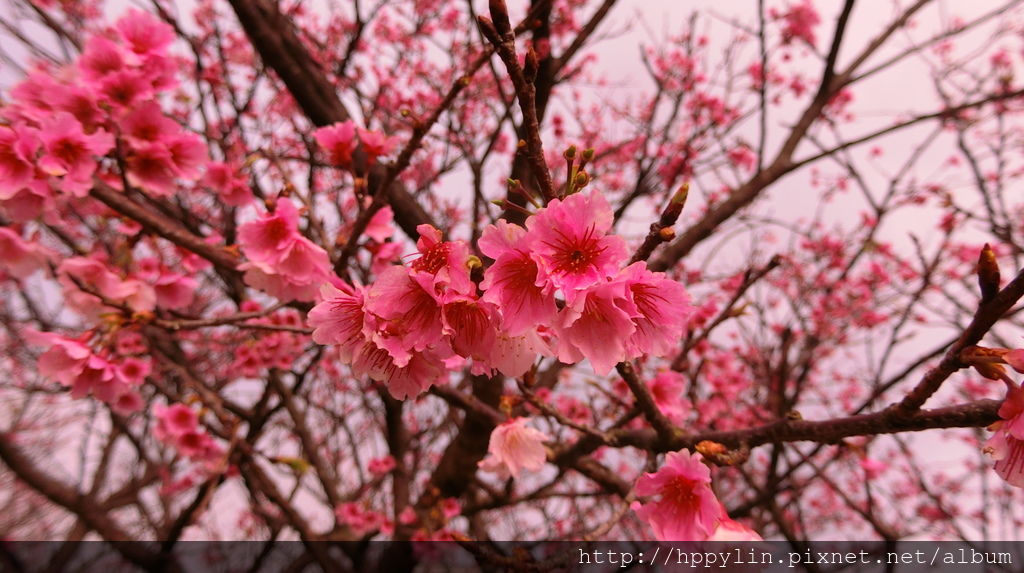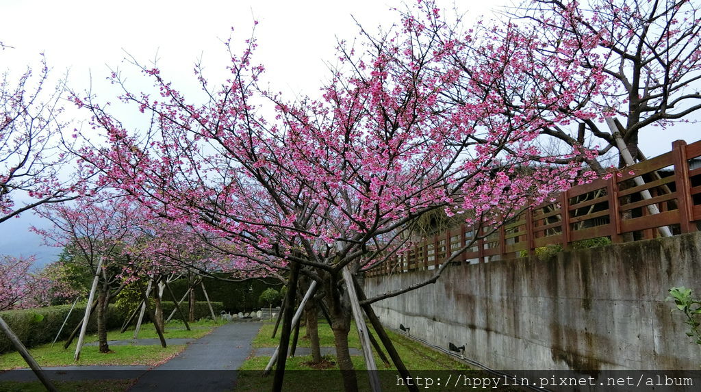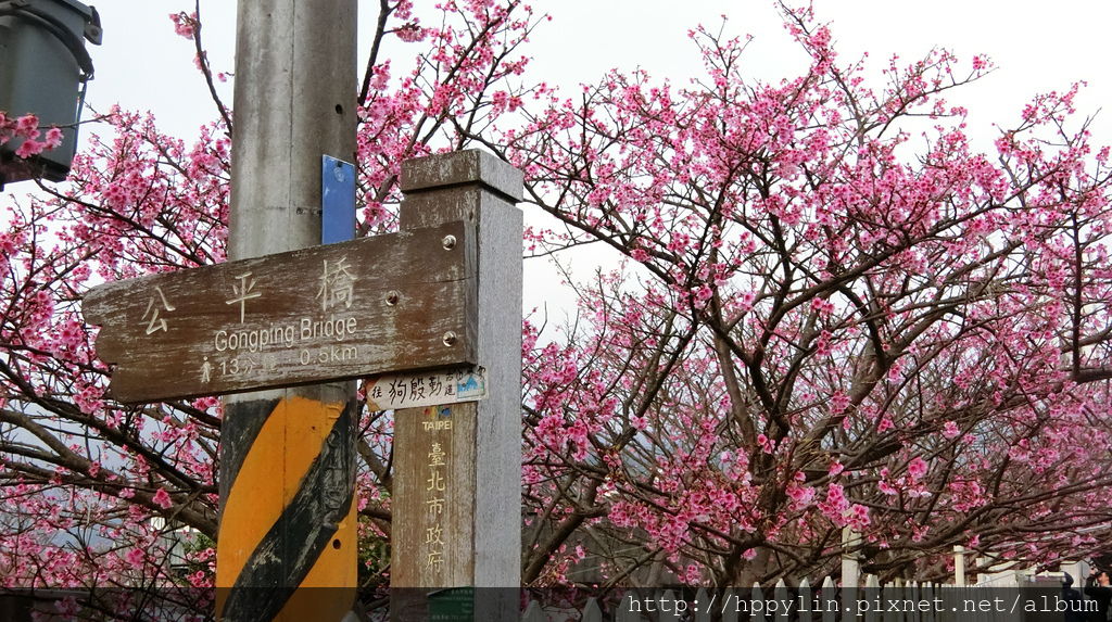 而往公平橋方向的櫻花則是還沒開,整棵都花苞