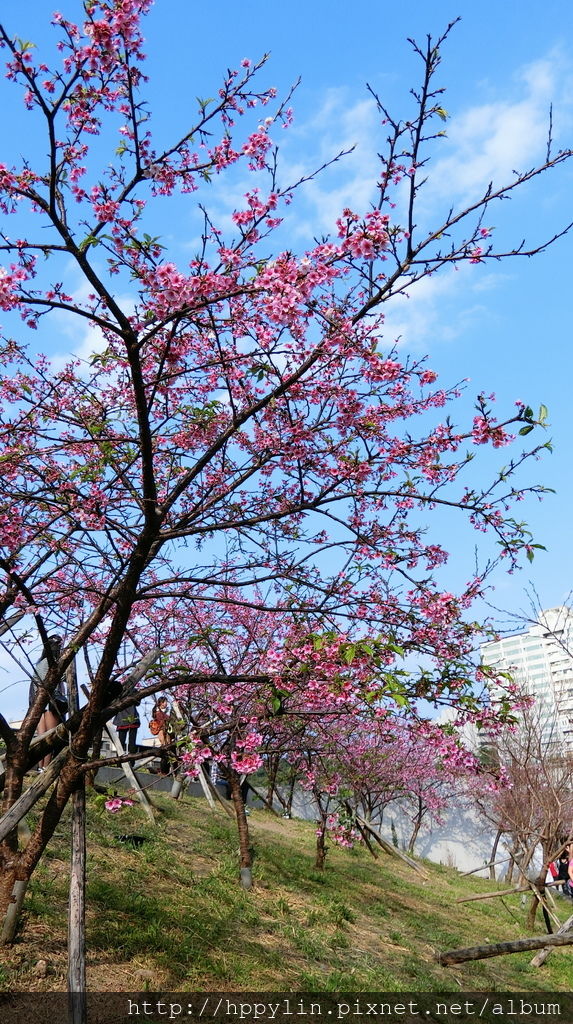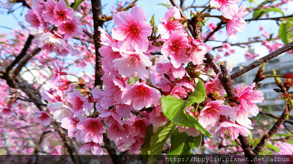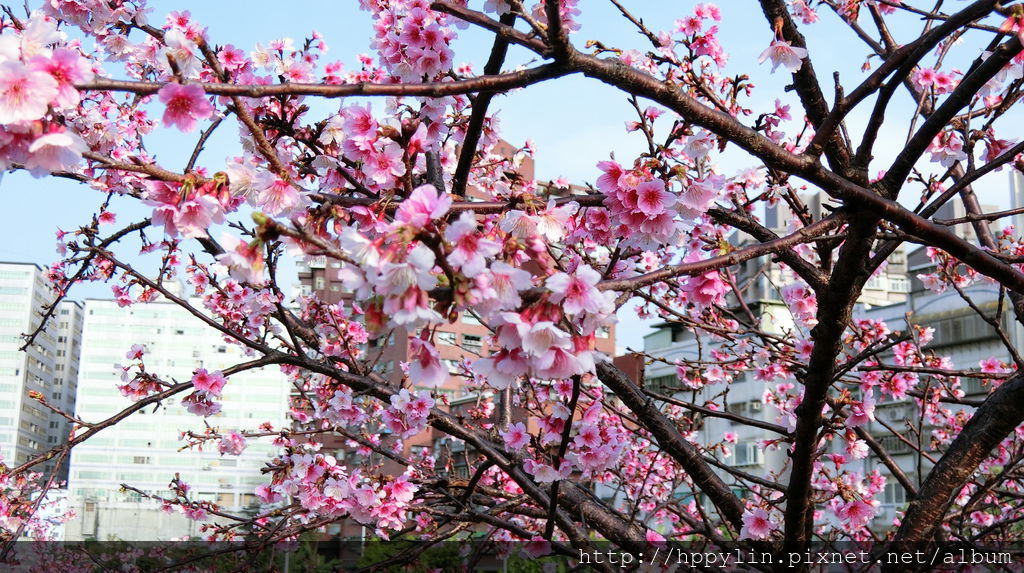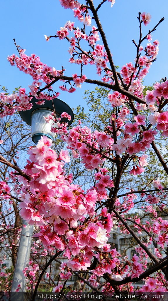 其實樂活公園種了很多品種的櫻花,目前先開的是寒櫻。 寒櫻特色是初開時是粉白色,後轉為粉紅色,最後轉為深桃紅色。