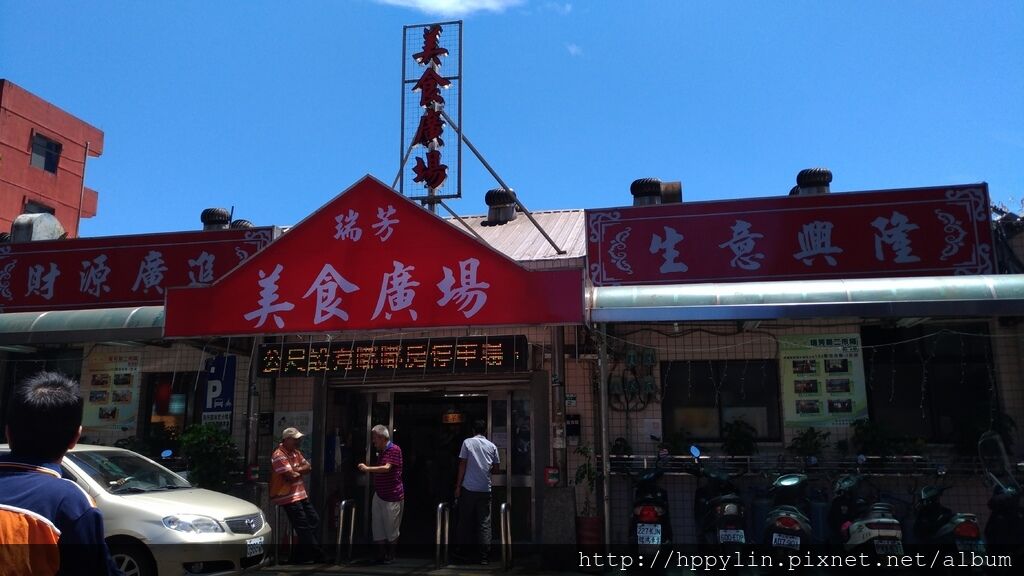 火車站前直走到底就可到「瑞芳美食廣場」內有冷氣,這種大熱天來這吃才對~果然一進入,幾乎每個美食攤位都客滿~