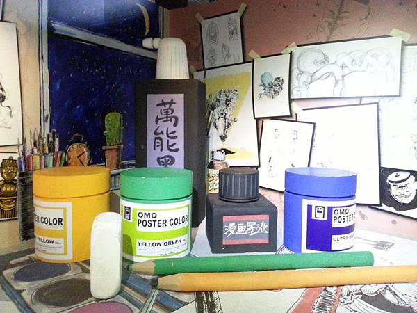 G區:漫畫工作台,筆和橡皮檫都可拿起來拍照