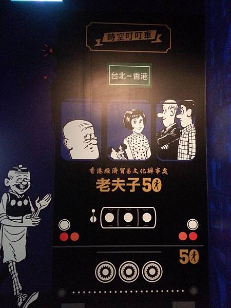 一進去右手邊就是只剩衣服模型,服務人員為我們解說老夫子和大番薯已超越時空了,將在裏面各時代場區,待我們去尋找!