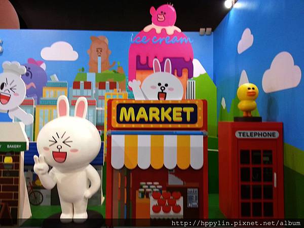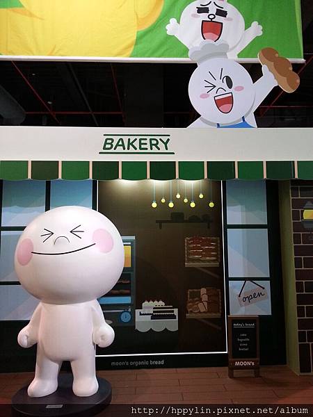 互動區:可掃描活動版上面的圖片(要先下載其專用的APP-MARQ),就會出現LINE人物在手機上,可與其合拍~(沒放上來),以下是立體版框,可站在框內與其合照~可惜我是自已一人去所以很難拍~@@